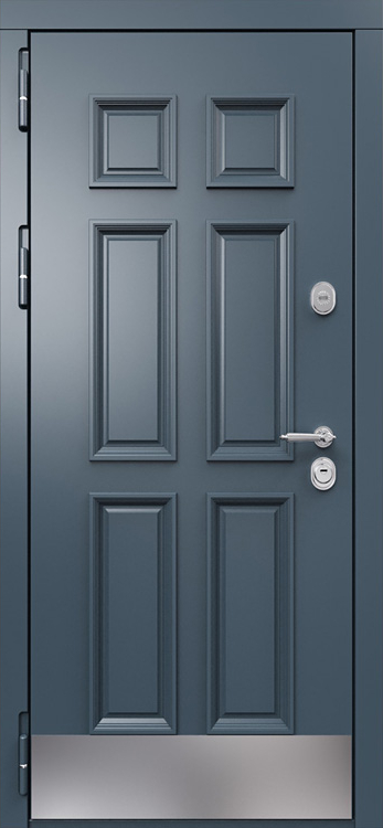 Дверь стальная МДФ эмаль №563 — это удачное сочетание надежной металлической основы и аккуратной декоративной отделки. Каркас из профильной трубы и стальной лист толщиной 2 мм обеспечивают прочность и устойчивость к взлому, а ребра жесткости повышают общий ресурс эксплуатации. Важной особенностью модели является наличие терморазрыва в коробке и полотне: конструкция эффективно препятствует промерзанию зимой, исключает появление конденсата и сохраняет тепло в помещении. Панели МДФ с ПВХ-покрытием, использованные с обеих сторон, защищены от влаги и мелких механических повреждений, благодаря чему дверь долго сохраняет привлекательный внешний вид. Два контура резинового уплотнителя дополнительно усиливают защиту от сквозняков и уличного шума. Такая дверь органично подходит для частных домов, квартир и офисов, сочетая в себе надежность стали и практичность современной отделки. Дверь стальная МДФ эмаль №563 от производителя: быстрое изготовление и монтаж в Ногинске, индивидуальные размеры, широкий выбор материалов и фурнитуры, официальная гарантия до 10 лет.