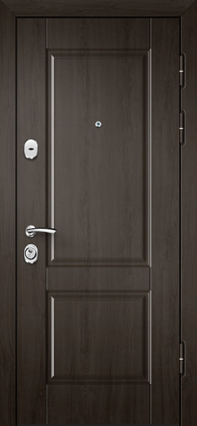 Входная дверь для квартиры чёрная №553 сразу выделяется строгим и уверенным характером. Глубокий тёмный оттенок придает конструкции солидность и универсальность — такая дверь одинаково уместна и в современном офисе, и в квартире, и в частном доме. Каркас выполнен из профильной трубы с металлическим листом толщиной 2 мм и усилен ребрами жесткости, что гарантирует высокую надежность и стойкость к взлому. С обеих сторон используется накладка МДФ, которая не только украшает полотно, но и обеспечивает стойкость к мелким повреждениям и износу, сохраняя аккуратный внешний вид долгие годы. Два контура уплотнения вместе с резиновыми вставками улучшают герметичность и комфорт при закрытии. Дверь гармонично сочетает практичность металла и элегантность декоративной отделки, создавая впечатление уверенности и защищенности уже с первого взгляда. Входная дверь для квартиры чёрная №553 от производителя: быстрое изготовление и монтаж в Ногинске, индивидуальные размеры, широкий выбор материалов и фурнитуры, официальная гарантия до 10 лет.