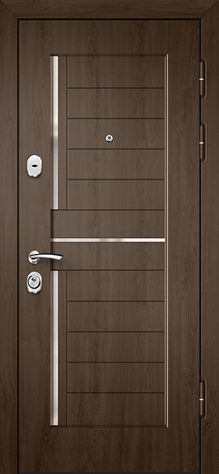 Глубокий оттенок венге всегда выглядит благородно и современно, а декоративная панель придаёт полотну завершённый стильный образ. Дверь МДФ цвета венге с внешней декоративной панелью №538 подходит для установки как в частных домах, так и в квартирах или офисах, где ценят сочетание надёжности и эстетики. Плиты МДФ отличаются прочностью, стойкостью к мелким механическим повреждениям и долго сохраняют первоначальный вид без потери насыщенности цвета. Конструкция выполнена на основе стального каркаса с листом металла толщиной 2 мм и рёбрами жёсткости, что обеспечивает высокий уровень прочности. Два контура уплотнения повышают комфорт эксплуатации, защищая от сквозняков. Дополнительно дверь можно оснастить шумо- и теплоизоляцией, зеркалом, стеклопакетом или коваными элементами, сделав её не только практичной, но и индивидуальной деталью интерьера. Дверь МДФ цвета венге с внешней декоративной панелью №538 от производителя: быстрое изготовление и монтаж в Ногинске, индивидуальные размеры, широкий выбор материалов и фурнитуры, официальная гарантия до 10 лет.
