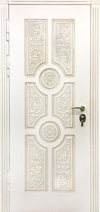 Дверь уличная с терморазрывом №49 — это надежное решение для частных домов и коттеджей, которое обеспечит комфорт и защиту от внешних факторов. С терморазрывом в коробке и полотне, эта дверь исключает проникновение холода, сохраняя тепло в доме и предотвращая появление конденсата. Внешняя и внутренняя отделка выполнена с использованием накладки МДФ, что придает двери привлекательный вид и долговечность, стойкость к механическим повреждениям и атмосферным воздействиям. Ковка, как элемент декора, добавляет изысканности и подчеркивает индивидуальность. Металлическая конструкция с толщиной полотна 1,5 мм и каркасом из профильных труб гарантирует прочность и устойчивость. Уплотнение с тремя контурами магнитного герметика и высокая шумо- и теплоизоляция на основе пенопласта делают дверь идеальной для использования в уличных условиях. Возможность замены замков и добавления стеклопакетов или кованых элементов позволяет индивидуализировать дверное решение под любые потребности. Дверь уличная с терморазрывом №49 от производителя: быстрое изготовление и монтаж в Ногинске, индивидуальные размеры, широкий выбор материалов и фурнитуры, официальная гарантия до 10 лет.