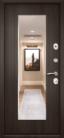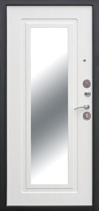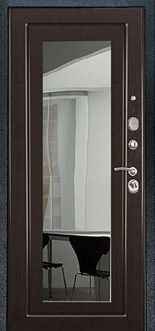 Надёжность металлической двери всегда в приоритете, но когда она получает дополнительное оснащение, результат становится особенно удобным. Входная дверь с зеркалом №78 удачно объединяет прочность конструкции и практичность деталей: массивный каркас из профильной трубы, лист стали толщиной 2 мм и усиленные рёбра жёсткости формируют крепкий защитный барьер, а зеркало на внутренней стороне делает её частью интерьера, экономя место и добавляя визуального простора. Снаружи используется молотковое напыление, устойчивое к царапинам и погодным перепадам, благодаря чему дверь подходит как для квартиры, так и для частного дома. Внутренняя отделка выполнена плитой МДФ, которая выглядит стильно и сохраняет аккуратность даже при активной эксплуатации. Два контура уплотнения помогают защитить помещение от сквозняков, а при необходимости конструкцию можно дополнить шумоизоляцией, современными замками и даже видеодомофоном. Входная дверь с зеркалом №78 от производителя: быстрое изготовление и монтаж в Ногинске, индивидуальные размеры, широкий выбор материалов и фурнитуры, официальная гарантия до 10 лет.