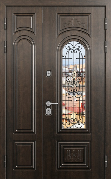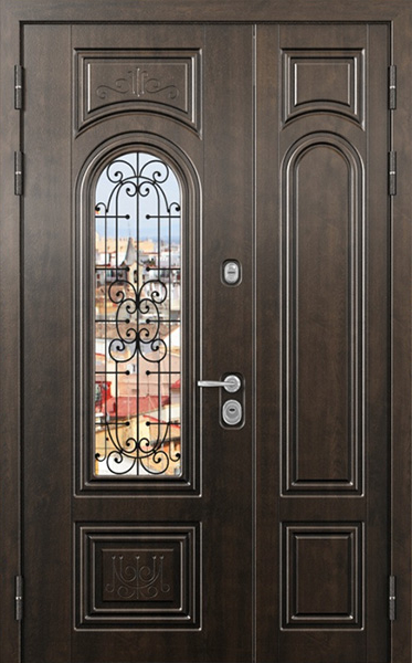 Двупольная стальная дверь со стеклопакетом и кованым узором №24 станет отличным выбором для тех, кто ценит не только безопасность, но и стиль. Внешняя и внутренняя отделка выполнены из МДФ, что придает двери элегантный и современный вид, а также обеспечивает высокую устойчивость к механическим повреждениям и износу. Стеклопакет и кованые элементы добавляют изысканности и уникальности, при этом сохраняя прочность конструкции. Двупольная стальная дверь со стеклопакетом и кованым узором №24 от производителя: быстрое изготовление и монтаж в Ногинске, индивидуальные размеры, широкий выбор материалов и фурнитуры, официальная гарантия до 10 лет.