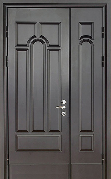 Металлическая двухстворчатая дверь для дома цвета графит №27 – это стильное и надежное решение для вашего жилья. Внешняя и внутренняя отделка выполнены из МДФ, что придает двери изысканный вид и увеличивает её стойкость к механическим повреждениям. Цвет графит придаёт двери современный и элегантный оттенок, который легко впишется в интерьер как частных домов, так и современных офисов. Металлическая двухстворчатая дверь для дома цвета графит №27 от производителя: быстрое изготовление и монтаж в Ногинске, индивидуальные размеры, широкий выбор материалов и фурнитуры, официальная гарантия до 10 лет.