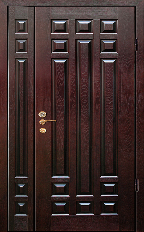 Эта двухстворчатая парадная дверь с объемной фрезеровкой №3 станет отличным акцентом в любом интерьере, добавив элегантности и солидности. Внешняя и внутренняя отделка из натурального дерева придает двери натуральный и стильный вид, который легко впишется как в классические, так и современные дизайны. Прочная конструкция двери с каркасом из профильной трубы 50х25 мм и листом металла толщиной 2 мм гарантирует долговечность и защиту. Ребра жесткости из профильных труб 40х25 мм повышают ее устойчивость к нагрузкам. Замки "Просам" и "Мосрентген" с тремя ригелями обеспечивают надежную защиту. Возможность выбора отделки и установки дополнительных элементов, таких как зеркало, стеклопакет или кованые детали, позволяет сделать дверь уникальной и подходящей под любые требования. Терморазрыв полотна и коробки способствует улучшению теплоизоляции. Вдобавок можно оснастить дверь современными замками и видеодомофоном для дополнительного комфорта и безопасности. Парадная двухстворчатая дверь с объемной фрезеровкой №3 от производителя: быстрое изготовление и монтаж в Ногинске, индивидуальные размеры, широкий выбор материалов и фурнитуры, официальная гарантия до 10 лет.