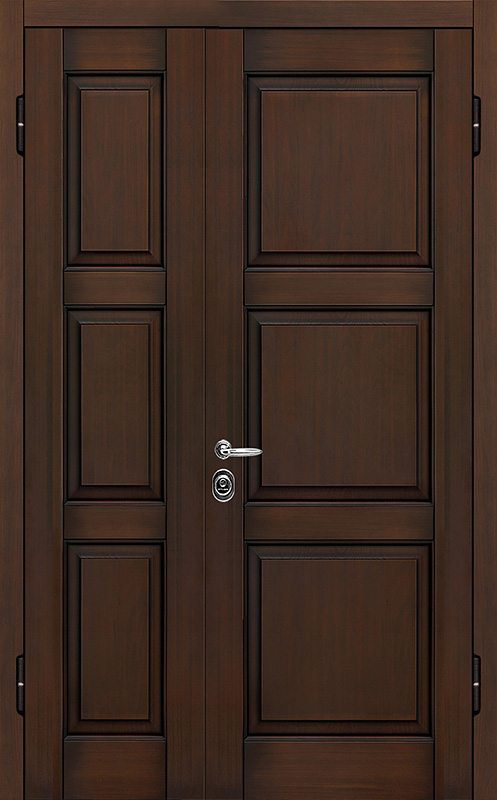 Двойная филенчатая дверь для загородного дома венге №7 сочетает в себе элегантность и прочность. Ее внешняя отделка выполнена из панелей МДФ с ПВХ, что придает двери современный вид, а также обеспечивает устойчивость к механическим повреждениям и долговечность. Каркас из профильной трубы 50х25 мм и полотно толщиной 2 мм гарантируют надежность и устойчивость к нагрузкам. Ребра жесткости из профильных труб 40х25 мм усиливают конструкцию, а уплотнение с двумя контурами защищает от проникновения влаги и пыли. Замки "Просам" и "Мосрентген" с тремя ригелями обеспечивают высокий уровень безопасности. В дверь можно добавить дополнительные элементы, такие как стеклопакет, зеркало или кованые детали, что позволяет адаптировать ее под любой интерьер. Терморазрывы в коробке и полотне способствуют лучшей теплоизоляции, обеспечивая комфорт в любое время года. Двойная филенчатая дверь для загородного дома венге №7 от производителя: быстрое изготовление и монтаж в Ногинске, индивидуальные размеры, широкий выбор материалов и фурнитуры, официальная гарантия до 10 лет.