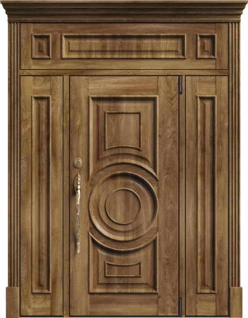 Эксклюзивная глянцевая дверь в частный дом с нестандартной фрезеровкой №24