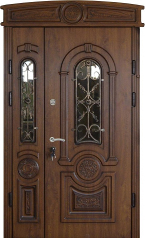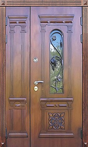 Дверь входная двухстворчатая с витражным стеклом №47