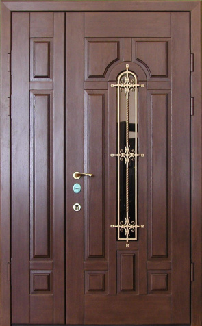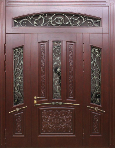 Эксклюзивная глянцевая дверь в частный дом с нестандартной фрезеровкой №24