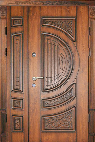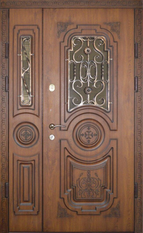 Входная металлическая дверь для частного дома со стеклом и ковкой №29