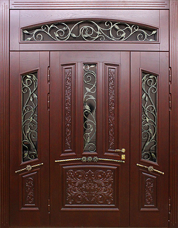 Эта модель создана для тех, кто ценит солидность и внушительный внешний вид парадного входа. Натуральный массив дуба в отделке придаёт дверному полотну статусный характер, а стеклянные вставки позволяют добавить света и лёгкости фасаду дома. При этом основа конструкции выполнена из прочной профильной трубы с использованием листа металла толщиной 2 мм и ребер жёсткости, что гарантирует надёжность и устойчивость к взлому. Двустворчатая входная дверь со стеклом №39 удобна для широких проёмов коттеджей и частных домов, обеспечивая не только безопасность, но и удобство при внесении крупногабаритной мебели. Итальянские замки Cisa сочетают в себе высокий класс защиты и плавность хода механизма, а наличие двух контуров уплотнения дополнительно защищает от сквозняков. Возможность комбинировать отделку, добавить зеркало, витраж или кованые элементы делает модель гибкой для индивидуального дизайна и подчеркивает её представительский статус. Двустворчатая входная дверь со стеклом №39 от производителя: быстрое изготовление и монтаж в Ногинске, индивидуальные размеры, широкий выбор материалов и фурнитуры, официальная гарантия до 10 лет.