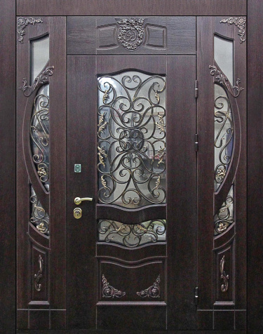 Кованая дверь под старину для частного дома №38 — это идеальное решение для тех, кто ценит уникальный стиль и надёжность. Изготовленная из массива дуба как снаружи, так и внутри, она привнесёт атмосферу уюта и элегантности в ваш дом или коттедж. Эта дверь с элементами ковки, выполненная на основе прочной профильной трубы, представляет собой сочетание классического дизайна и современной функциональности. Она прекрасно подходит для установки в парадной зоне, создавая неповторимый акцент в интерьере. С механической точки зрения дверь оснащена двумя замками Cisa с четырьмя и пятью ригелями, обеспечивающими надёжную защиту. Стойкость к внешним воздействиям и долговечность отделки гарантируют сохранение первоначального вида в течение долгого времени. Кованая дверь под старину для частного дома №38 от производителя: быстрое изготовление и монтаж в Ногинске, индивидуальные размеры, широкий выбор материалов и фурнитуры, официальная гарантия до 10 лет.