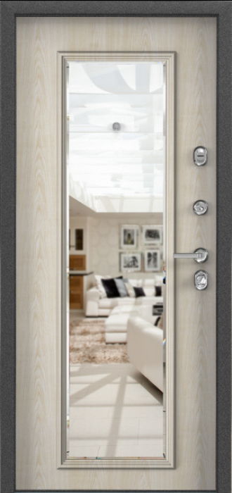 Сочетание прочной конструкции и декоративных решений делает эту модель особенно практичной для частного дома или квартиры. Каркас и полотно выполнены из профильной трубы с листом стали толщиной 2 мм, усиленные рёбрами жёсткости и блокираторами, что обеспечивает высокую надёжность. Два контура резинового уплотнителя препятствуют проникновению влаги и сквозняков, а порошковое напыление на внешней поверхности защищает металл от коррозии и сохраняет аккуратный вид даже при воздействии осадков и солнечного света. Внутренняя отделка панелями МДФ ПВХ создаёт уютный интерьерный акцент и устойчива к повседневным нагрузкам. Дверь входная металлическая уличная в дом №12 дополнена зеркалом, которое делает её не только функциональной, но и более удобной в быту. Для безопасности предусмотрены два замка российского производства — сувальдный Просам и цилиндровый Мосрентген, каждый с тремя ригелями. Дополнительно дверь можно оснастить стеклопакетом или коваными элементами, превратив её в индивидуальное решение для конкретных задач. Дверь входная металлическая уличная в дом №12 от производителя: быстрое изготовление и монтаж в Ногинске, индивидуальные размеры, широкий выбор материалов и фурнитуры, официальная гарантия до 10 лет.